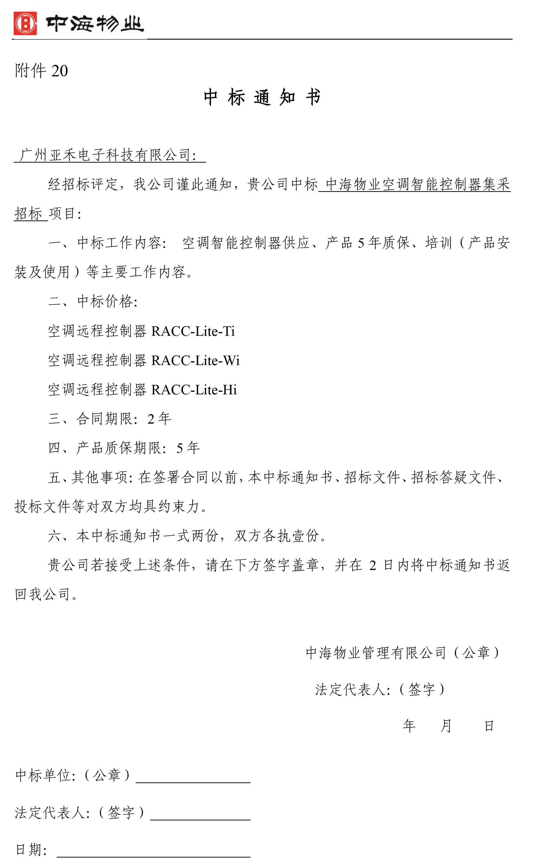 經(jīng)評審廣州派谷電子旗下產(chǎn)品亞禾空調(diào)智能節(jié)能遠(yuǎn)程空調(diào)控制器RACC中標(biāo)成交