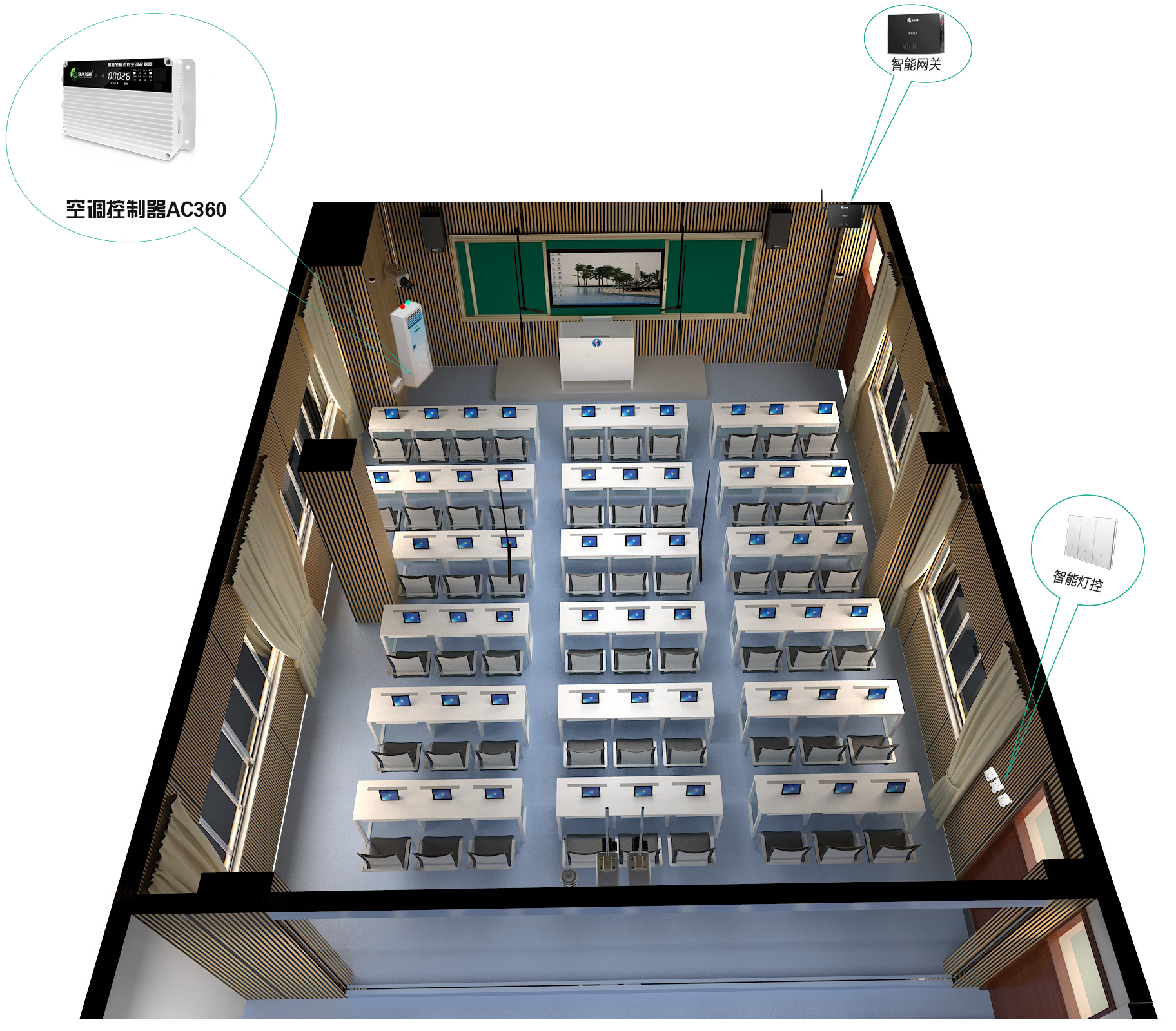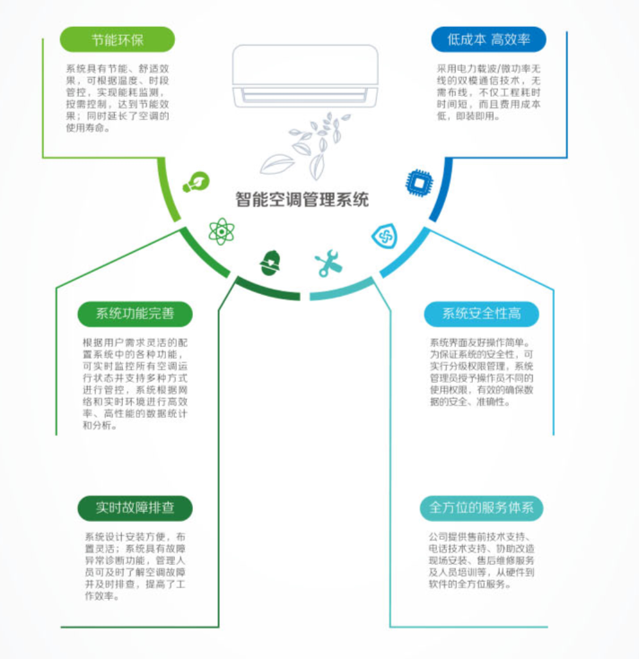 2. 管理效率低下:空調設備分布在多個教學樓、不同樓層的教室及功能室中,傳統管理模式需安排后勤人員逐間巡查、手動操作,不僅占用大量人力成本,還存在響應滯后問題。例如,突發公開課需要調整教室溫度時,需后勤人員現場操作;課間操結束后,需逐間關閉未關機的空調,耗時費力且易遺漏。