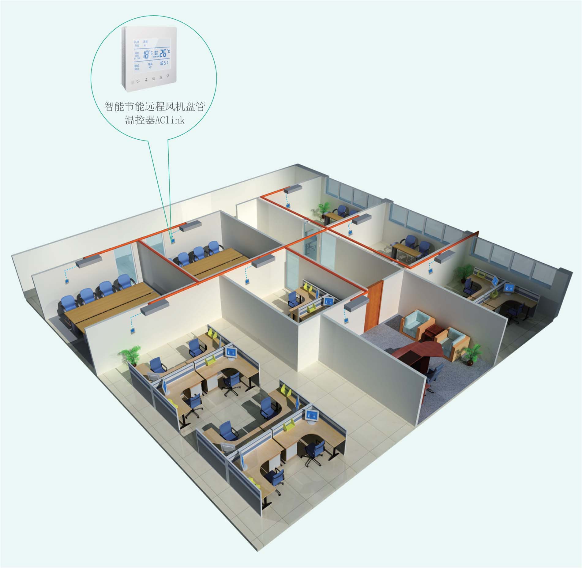AClink應(yīng)用于水系統(tǒng)的中央空調(diào)末端風(fēng)機(jī)盤管的智能節(jié)能遠(yuǎn)程控制,應(yīng)用場所主要有醫(yī)院、酒店、寫字樓、辦公室等,AClink有各類豐富的配置,不同的應(yīng)用場所可以配置不同的功能,在保證正常使用空調(diào)的前提下最大限度智能化節(jié)能。